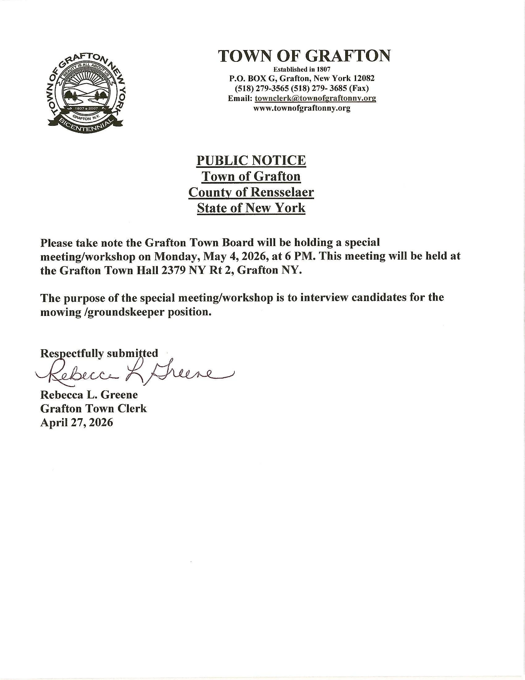 Grafton Center Cemetery Association Meeting May 12, 2026- see details on the Grafton Center Cemetery Assoc. page.